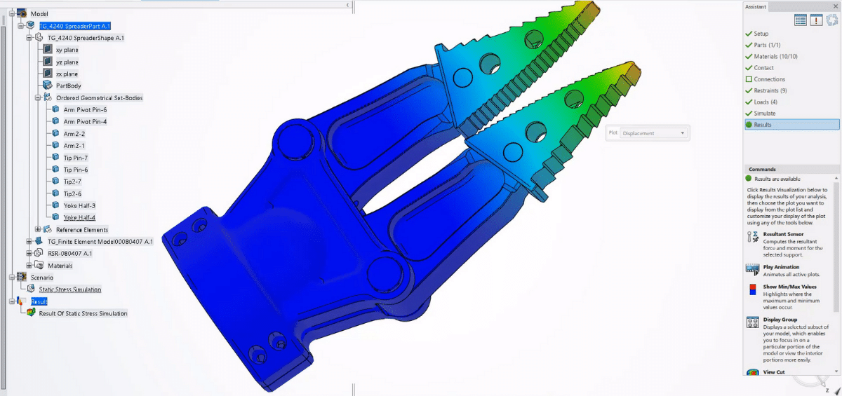 Ricorda che questa soluzione è completamente automatizzata e la configurazione è semplice e veloce. La semplificazione viene eseguita direttamente dal modello 3D SolidWorks e si risolve con la tecnologia di simulazione Abaqus. Inoltre, questa funzionalità è associativa, quindi il modello nello studio di simulazione si aggiornerà quando per qualsiasi motivo dovrai aggiornare la geometria CAD in SolidWorks.