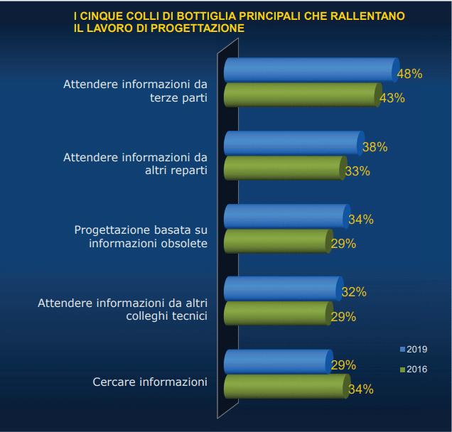 Secondo quanto riportato dal paper* dell’azienda di ricerca Tech-Clarity, emerge che su 240 aziende intervistate, il 99% di queste ha riportato un impatto aziendale negativo a causa dei colli di bottiglia nella progettazione, dando vita a fenomeni sgradevoli come ritardi nel time-to-market, costi in eccesso e scarsa qualità.