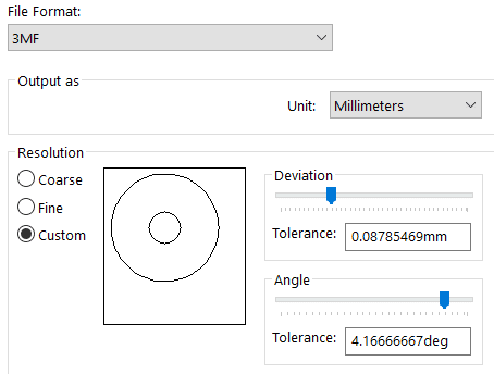 Una volta che ho risposto a queste domande e che ho creato il mio modello, lo esporto in uno dei tre formati di file: STL, 3MF o VRML. Oggi uso STL, per semplicità e facilità d’uso. Se il modello mi è stato inviato da un altro utente è in uno di questi formati, posso utilizzarlo direttamente. In caso contrario, posso aprirlo in SOLIDWORKS e salvarlo secondo le mie necessità.