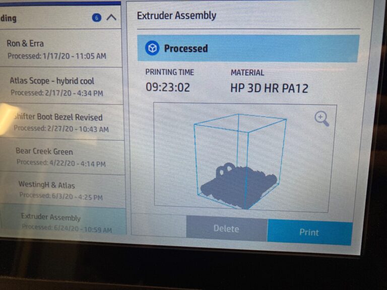 Una volta premuto start, avrò una previsione accurata di quanto tempo ci vorrà per il lavoro. Le stampanti della serie HP 500/300 hanno integrato la lavorazione dei materiali, la stampa e il raffreddamento. La serie 4200/5200 ha una stazione di lavorazione separata, che richiede lo spostamento della camera di costruzione. Questo aggiunge un passaggio, ma permette anche di stampare un secondo lavoro mentre il primo si raffredda, aumentando la capacità di produzione!