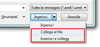 Se si ha l’accortezza di inserire le immagini con l’opzione “Collega” è possibile aggiornare la grafica anche dopo averla disposta nel layout, come è usuale nei software DTP.