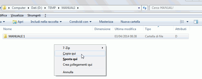 Si copi la cartella “MANUALE 1” a fianco, rinominandola “MANUALE 2”: