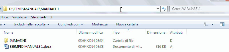 Ipotizziamo di avere un documento “ESEMPIO MANUALE 1.docx” nella cartella