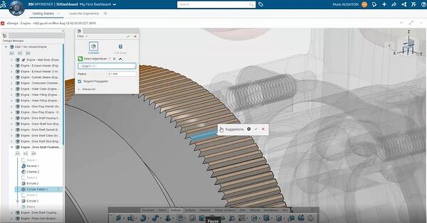 Un’idea simile vale per 3D Creator sulla piattaforma 3DEXPERIENCE, solo che in questo caso si tratta di un modellatore parametrico 3D che “impara” attraverso le tue interazioni passate durante la progettazione. Ad esempio, quando si effettua una selezione lavorando su un modello CAD, il Design Assistant può suggerire una serie di altre selezioni potenzialmente utili per chi sta lavorando, in base alle dimensioni, alla forma e all’orientamento della geometria. Man mano, con ogni selezione effettuata, la previsione dell’assistente di progettazione diventa più intelligente e più rilevante.