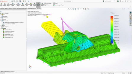 - SOLIDWORKS Simulation: alcune funzionalità sono state migliorate per consentire di eseguire studi in modo più semplice, ma senza perdere l’accuratezza dei risultati. In particolari sono stati migliorati i connettori Molla e Perno, introducendo nuove opzioni (tipi di facce selezionabili, Connessione distribuita, …) e migliorandone le prestazioni. La precisione della simulazione è migliorata per gli studi con superfici curve unite (formulazione unione superficie su superficie) quando le dimensioni della mesh delle superfici di origine e di destinazione sono diverse. In più, il tempo di mesh totale viene ridotto per gli assiemi che hanno più parti identiche quando viene utilizzato il mesher basato su curvatura alternativa.