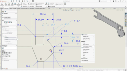 - Possibilità di eliminare elementi sotto la barra di rollback: è possibile eliminare gli elementi sotto la barra di rollback nel FeatureManager senza dover far scorrere la barra in avanti e perdere tempo in ricostruzioni inutili.