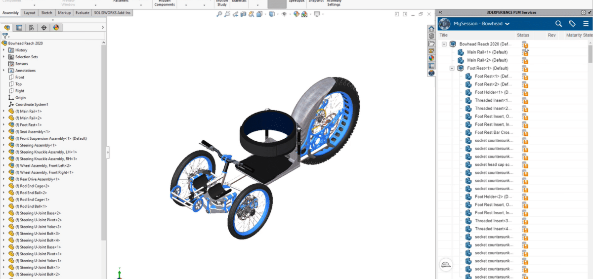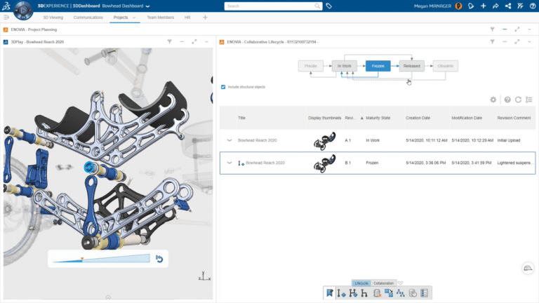 Le funzionalità avanzate di gestione dei dati, come il controllo delle revisioni, la stagionalità del prodotto, la gestione dei permessi e altro ancora, vengono abilitate automaticamente quando si apportano modifiche al progetto sulla piattaforma 3DEXPERIENCE. La piattaforma fornisce l’infrastruttura tecnologica per gestire i dati di progettazione del prodotto e i documenti su SolidWorks collegati al cloud.