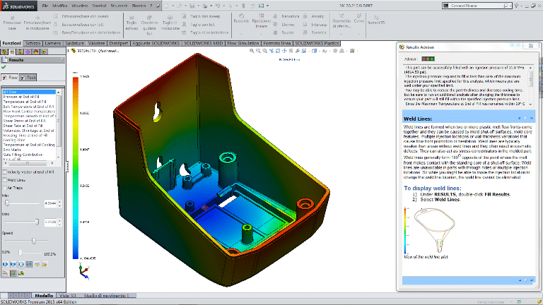 Prevedere in anticipo, fin dalle prime fasi di progettazione un problema che potrebbe comportare costose modifiche dello stampo è possibile usando un software come SolidWorks Plastics Standard che può migliorare la qualità del tuo prodotto e accelerare il time-to-market.SolidWorks Plastics è perfettamente integrato con il CAD SOLIDWORKS ed è intuitivo, semplice all’uso e non richiede competenze particolarmente approfondite, sul processo di stampaggio a iniezione, ad esempio, bastano pochissimi dati per poter lanciare una simulazione.